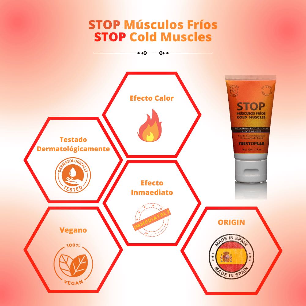 Η κρέμα Stop Cold Muscles δεν αντικαθιστά το ζέσταμα πριν από την άσκηση, αλλά χρησιμοποιείται σε συνδυασμό με τη σωματική προθέρμανση, βοηθά στην αποφυγή πιθανών έλξεων ή συσπάσεων.