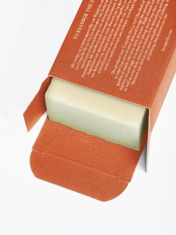 Το σαπούνι με έκκριμα σαλιγκαριού, ελαιόλαδο, άγρια λεβάντα, ιπποφαές, ρίγανη και πρόπολη καθαρίζει αποτελεσματικά το δέρμα διατηρώντας το παράλληλα απαλό και ενυδατωμένο. Το έκκριμα σαλιγκαριού βοηθά στην αποκατάσταση του επιδερμικού φραγμού του δέρματος και είναι πλούσιο σε κολλαγόνο διατηρώντας το δέρμα ενυδατωμένο. Το ελαιόλαδο είναι πλούσιο σε λιπαρά οξέα, βιταμίνη Ε και αντιοξειδωτικά και μαζί με τους ενυδατικούς παράγοντες του ελαίου καρύδας αναζωογονούν και ενυδατώνουν το δέρμα. Η πρόπολη έχει αντιφλεγμονώδεις ιδιότητες και βοηθά στην καταπράυνση της φλεγμονής που δημιουργείται στο δέρμα λόγω της ακμής.
